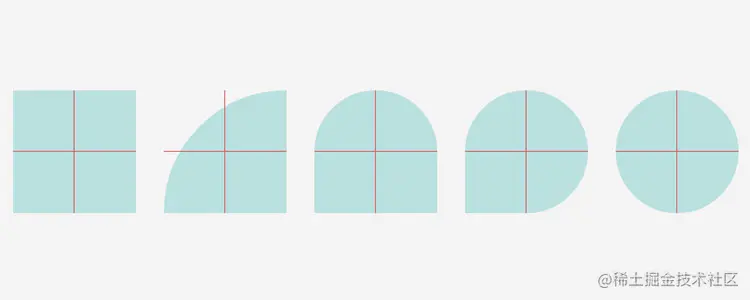 如果左上角的圆角半径被设置成了100%,那么圆角就会从这个方形左下角跨到右上角,相当于把圆角半径设置成为150px(也就是方形的大小)。如果同时把右上角的圆角半径也设置成为100%,则两个相邻圆角合起来就有200%。这种情况自然是不允许出现的,所以浏览器就会重新就算,匀出空间给右边的圆角,同时缩放两个圆角的半径直到它们可以刚好符合这个方形,所以半径就变成了50%。\