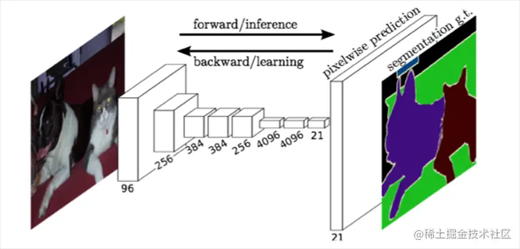 FCN对图像进行像素级的分类,从而解决了语义级别的图像分割问题。与经典的CNN在卷积层之后使用全连接层得到固定长度的特征向量进行分类(全联接层+softmax输出)不同,FCN可以接受任意尺寸的输入图像,采用反卷积层对最后一个卷积层的feature map进行上采样, 使它恢复到输入图像相同的尺寸,从而可以对每个像素都产生了一个预测, 同时保留了原始输入图像中的空间信息, 最后在上采样的特征图(heatmap)上进行逐像素分类。最后逐个像素计算softmax分类的损失, 相当于每一个像素对应一个训练样本。