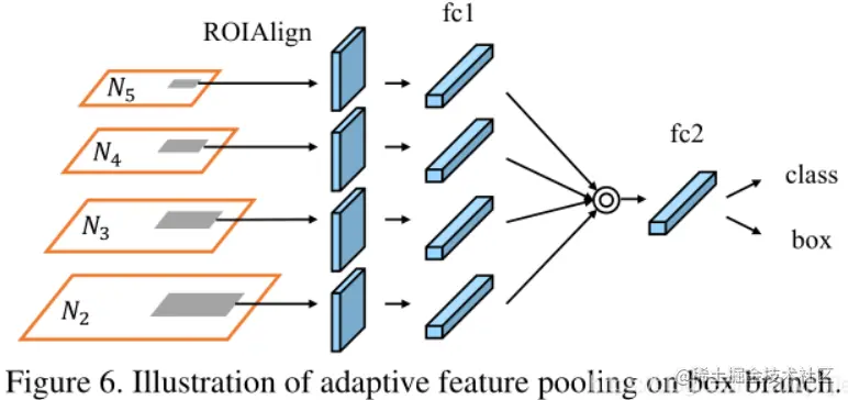 Mask R-CNN中RPN网络生成的ROI都需要经过ROI Align提取ROI特征,提取的特征都是单层特征。Adaptive Feature Pooling将此处的单层特征替换成多层特征,将多层特征全卷积后进行融合再进行ROI Align操作。