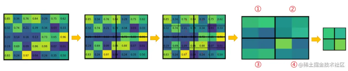 而对于每个小网格进行Max Pooling又要进行一次量化操作,这两次量化操作在feature maps上映射会原图就会产生较大的误差。