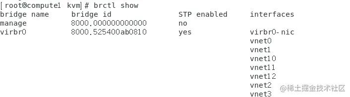 3、找到虚拟机对应宿主机的vnet,并将vnet从默认桥virbr0上删除,添加到manage桥上。