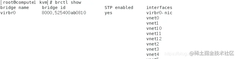 1、首先使用brctl show查看宿主机网桥使用情况。
