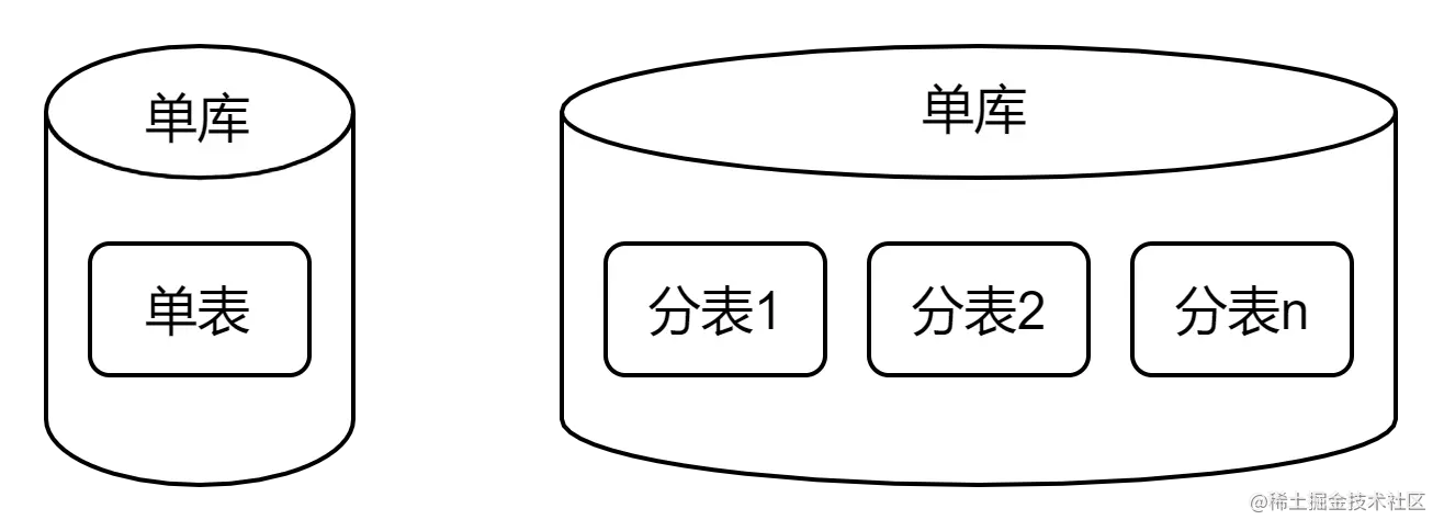 - 或单库、多个分表:之所以分表是为了给后续分库做预留准备