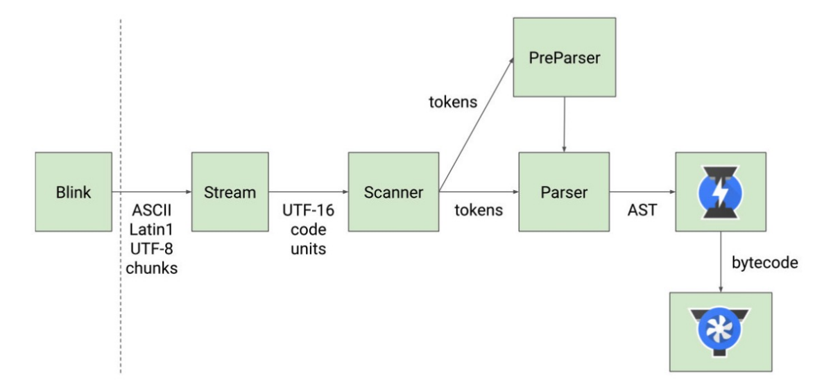 - PreParser 预解析,并不是所有的 js 代码一开始就执行,对所有的代码解析影响执行效率;因此 V8 对不必要先执行的函数进行 Lazy Parsing 延迟解析,先解析暂时需要的内容,等函数执行时再全量解析;