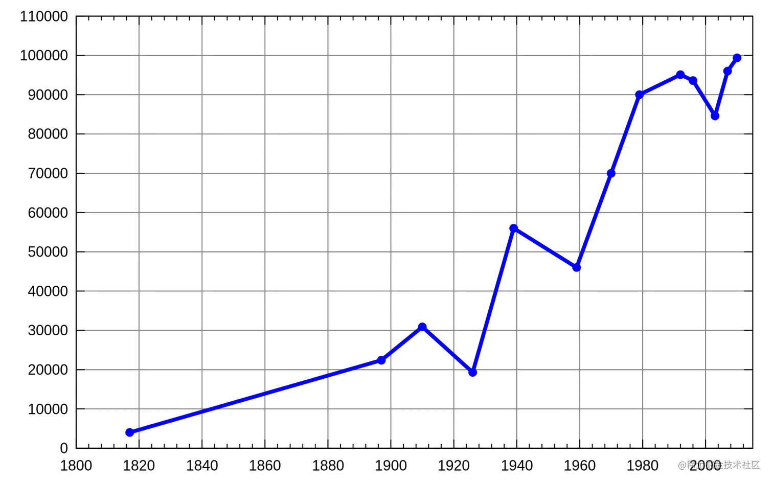 如上图所示,折线图可以用一条线段表示。