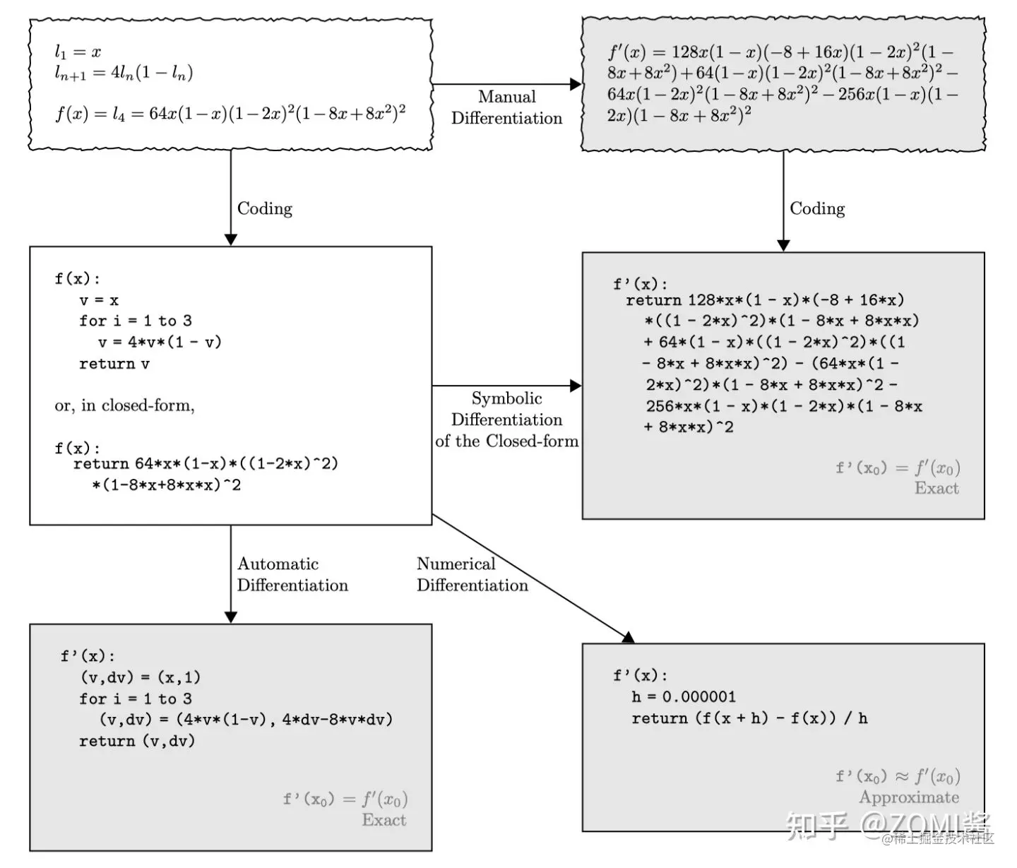对计算机程序求导的方法可以归纳为以下四种: