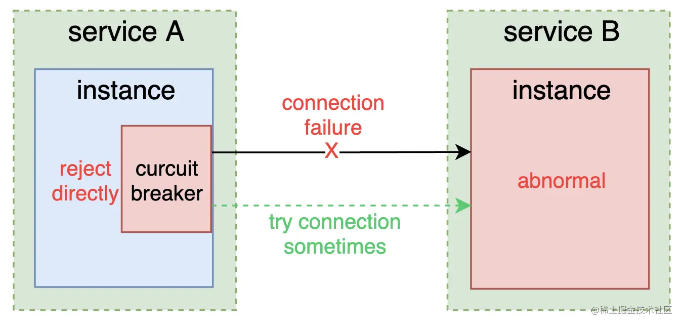 - 中断请求路径,增加冷却时间从而让故障实例尝试恢复