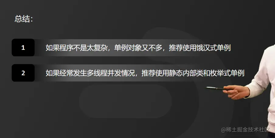 2、但如果经常发生多线程并发情况下,推荐使用静态内部类和枚举式单例,我的《设计模式就该这样学》这本书中,也推荐这样的写法。