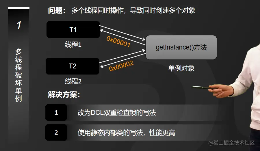 在多线程环境下,线程的时间片是由CPU自由分配的,具有随机性,而单例对象作为共享资源可能会同时被多个线程同时操作,从而导致同时创建多个对象。当然,这种情况只出现在懒汉式单例中。如果是饿汉式单例,在线程启动前就被初始化了,不存在线程再创建对象的情况。