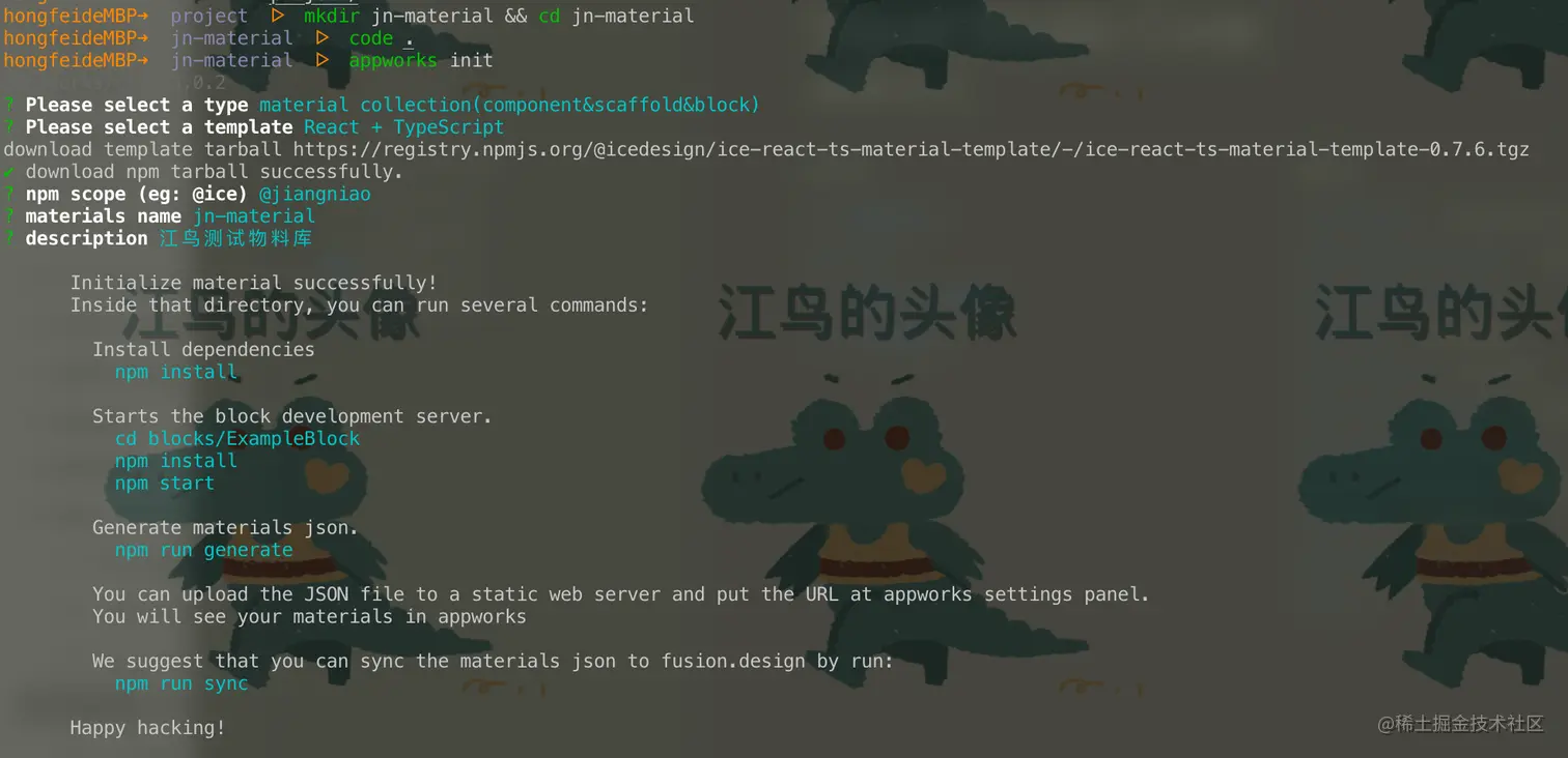 当然,如果已经有的物料不能满足我们的需求,AppWorks 还提供了开发自己物料的一整套流程,我们完全可以打造属于自己的物料库。并且因为很多公司会搭建私有的 npm,因此如果需要建设私有化的物料,其还贴心提供了相应的解决方案。