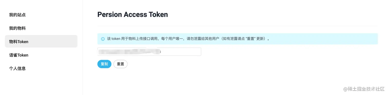 创建成功后记录自己的token,用于发布物料