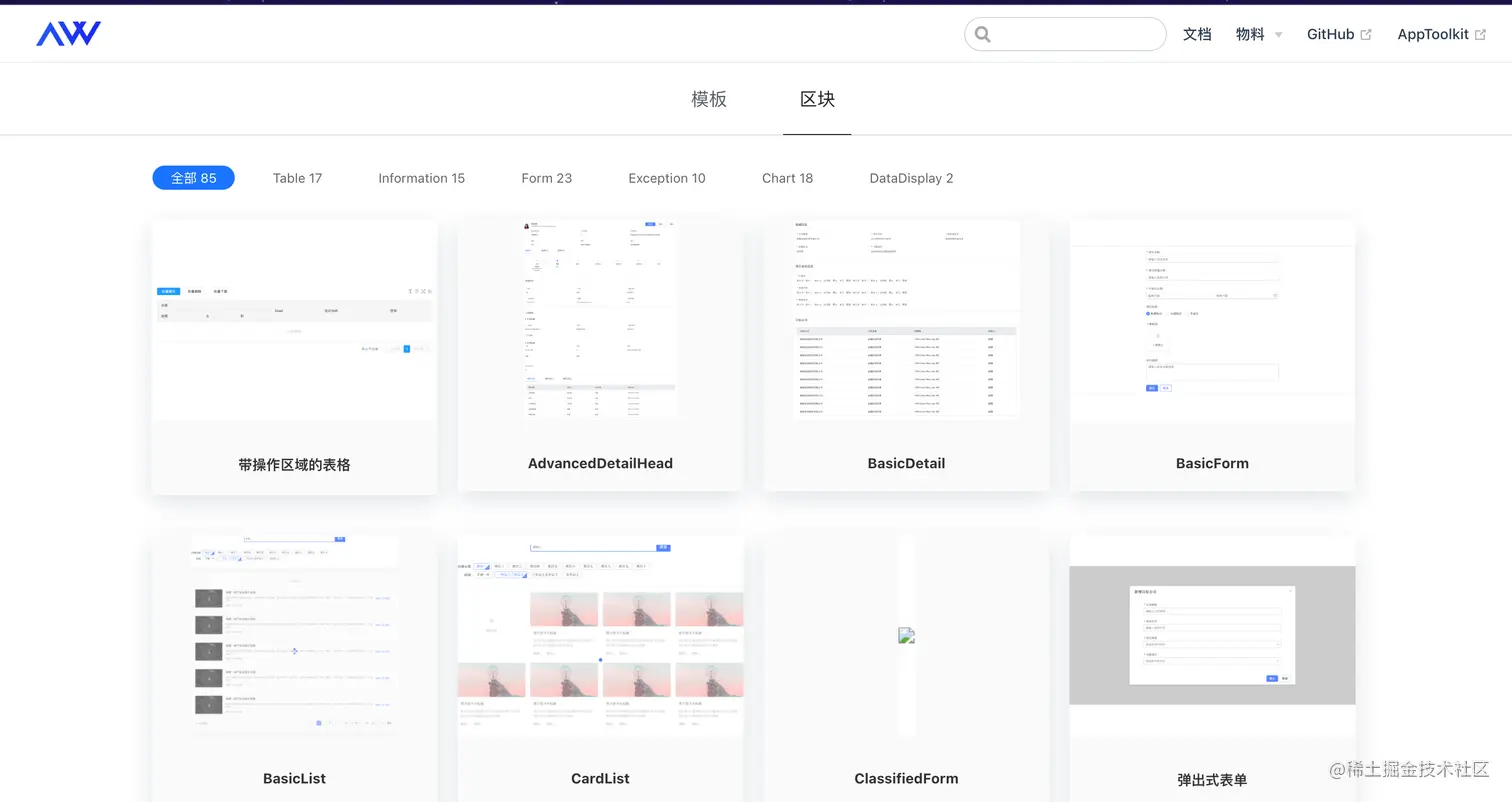 区块:一般是一个UI模块,使用区块时会将区块代码通过新建component的形式以组件的形式拷贝到项目代码中,我们可以进一步的对区块代码进行任何改动;