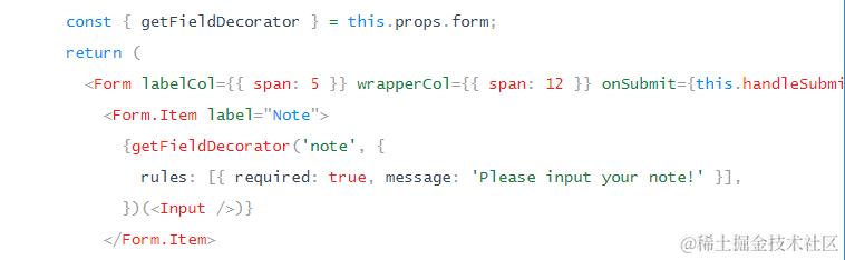 这里用的是getFieldDecorator方法,实现了类似vue中v-model的语法糖,劫持了onChange事件,赋值给实际对应的value。