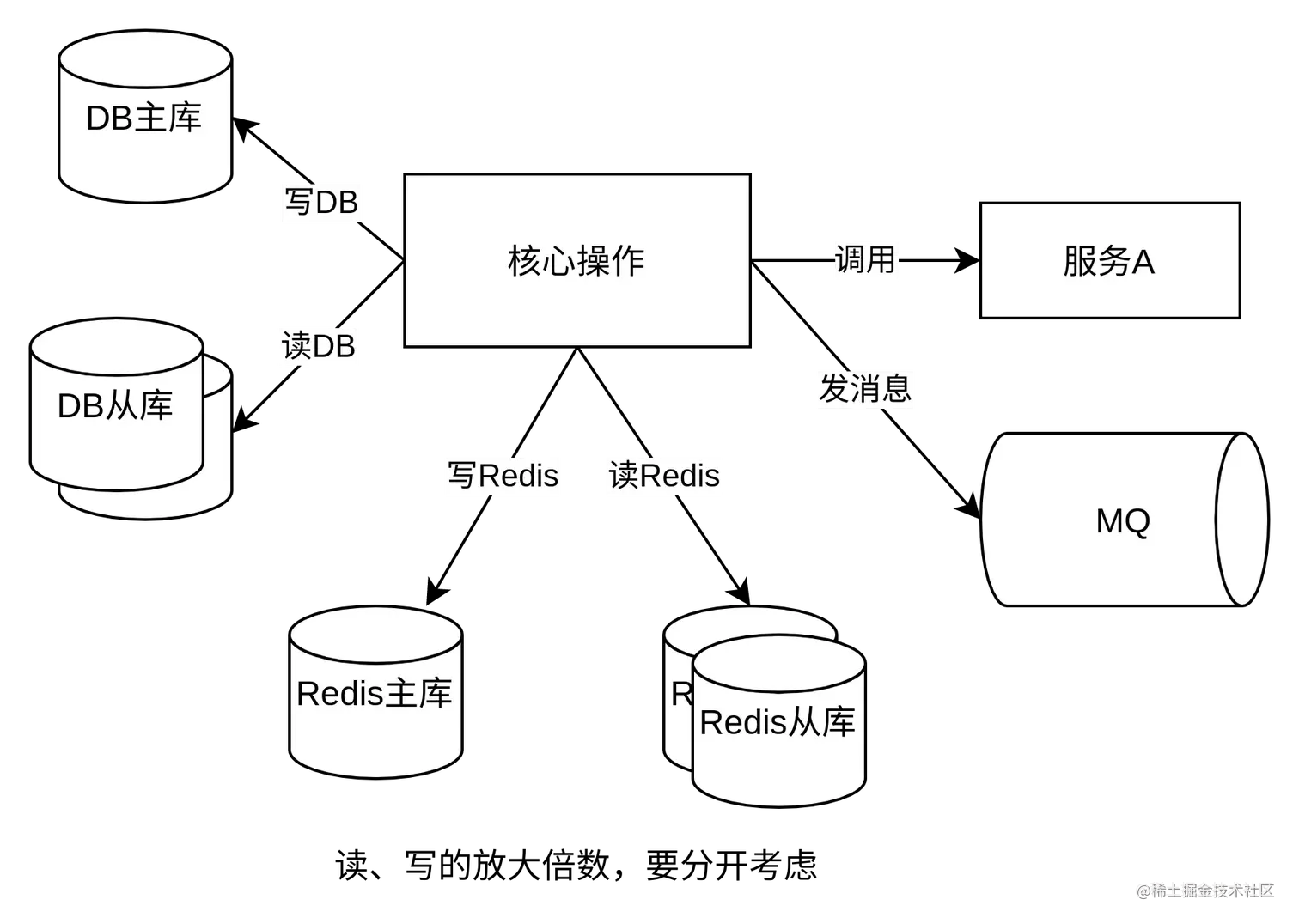 例如:1次核心操作,查了3次缓存、写了1次缓存、查了2次数据库、写了1次数据库、发了1次MQ消息、调了下游服务A的接口;