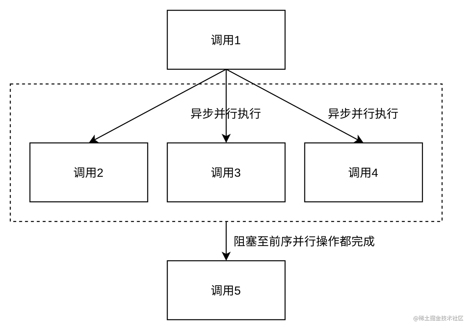// 调用5最后执行,会阻塞至前序操作都完成