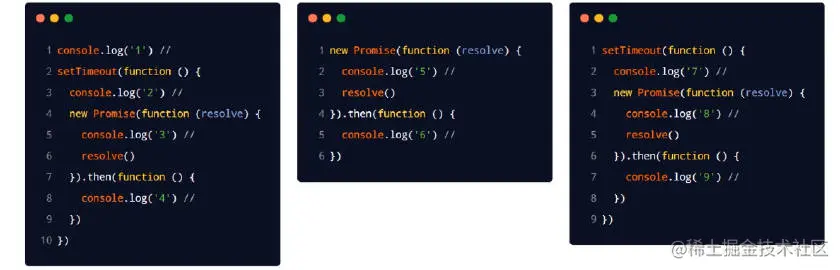 - 再去执行最右边的图片代码为宏任务放到任务队列