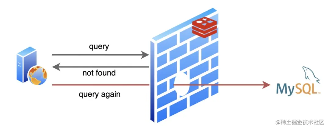 缓存穿透是指用户请求的数据在缓存中不存在即没有命中,同时在数据库中也不存在,导致用户每次请求该数据都要去数据库中查询一遍。
