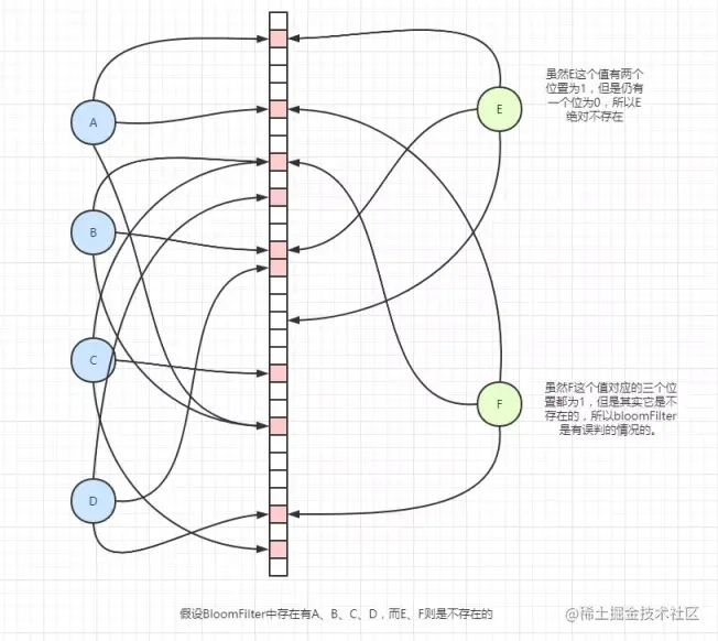 如果布隆过滤器判定某个 key 不存在布隆过滤器中,那么就一定不存在,如果判定某个 key 存在,那么很大可能是存在(存在一定的误判率)。于是我们可以在缓存之前再加一个布隆过滤器,将数据库中的所有key都存储在布隆过滤器中,在查询Redis前先去布隆过滤器查询 key 是否存在,如果不存在就直接返回,不让其访问数据库,从而避免了对底层存储系统的查询压力。