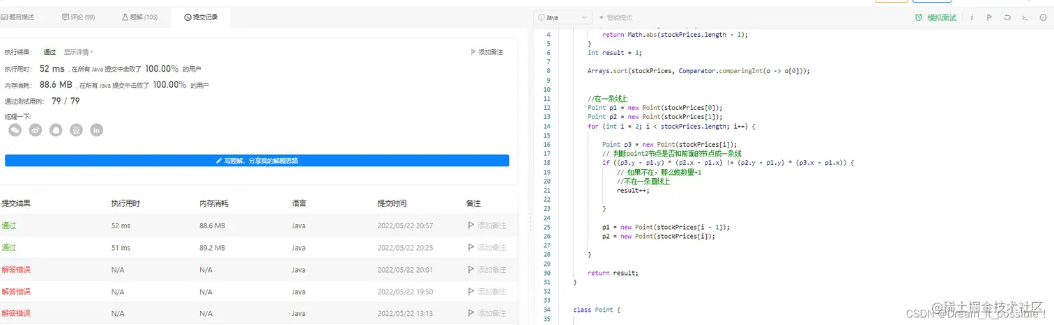 1) 题目要求我们判断三点是否在一条直线上,如果不是,那么线段数+1。