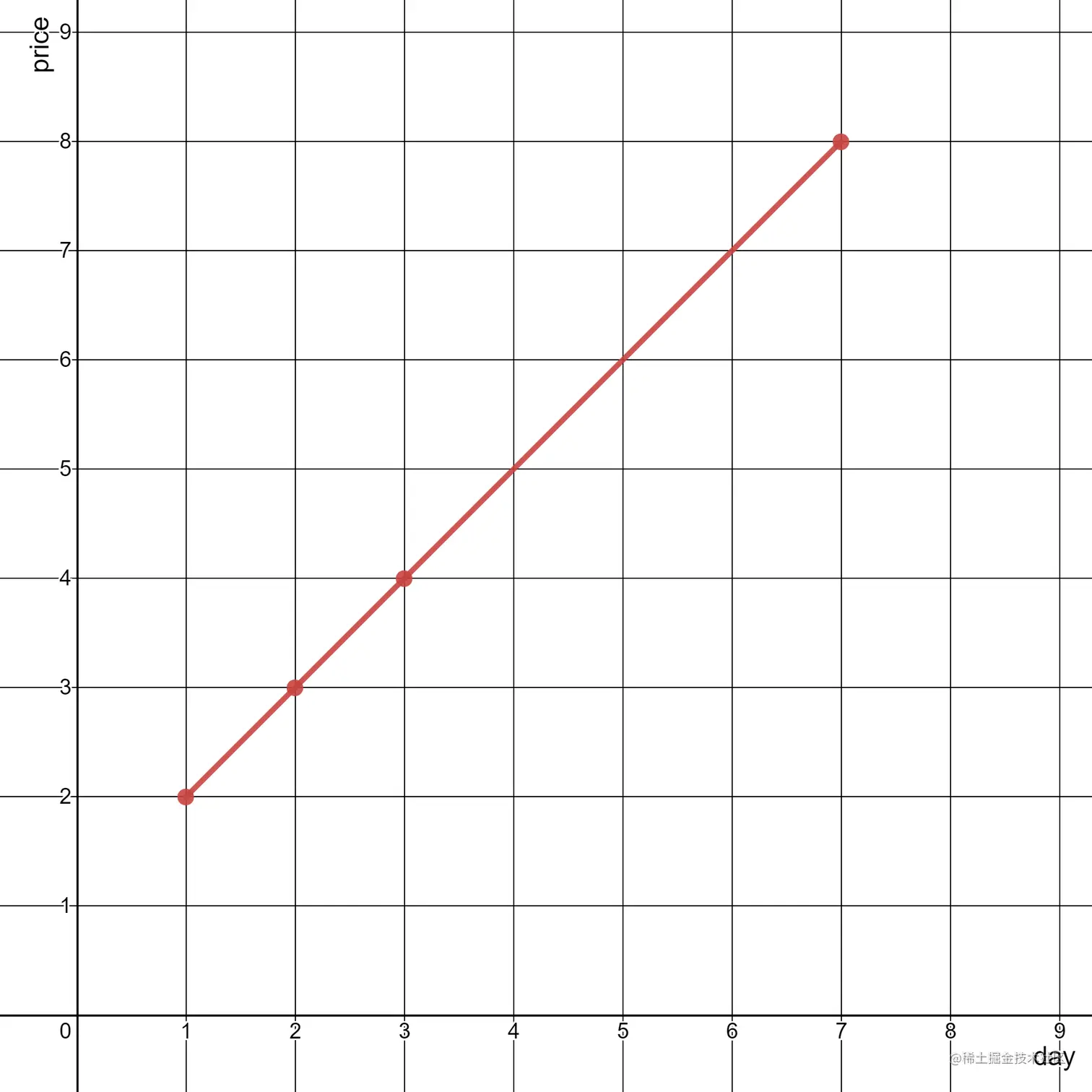 给你一个二维整数数组 stockPrices ,其中 stockPrices[i] = [dayi, pricei] 表示股票在 dayi 的价格为 pricei 。折线图 是一个二维平面上的若干个点组成的图,横坐标表示日期,纵坐标表示价格,折线图由相邻的点连接而成。比方说下图是一个例子: