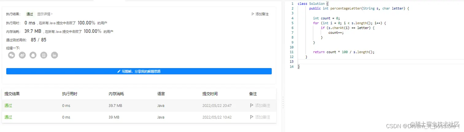 1. 字母在字符串中的百分比(简单)