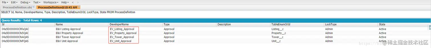 总结:从上图我们可以看出这个对象的用途是存储配置的Approval Processes记录,对应如下: