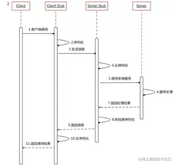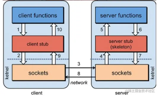 也就是说两台服务器 A,B,一个应用部署在 A 服务器上,想要调用 B 服务器上应用提供的函数或方法,由于不在一个内存空间,不能直接调用,需要通过网络来表达调用的语义和传达调用的数据;