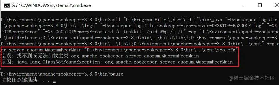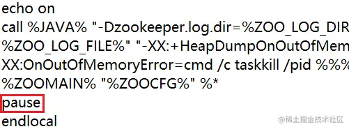 zkServer.cmd,在文件末尾,添加 pause,这样,运行出错就不会退出,会提示错误信息,方便找到原因; -