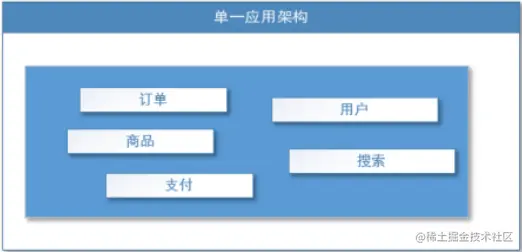 适用于小型网站,小型管理系统,将所有功能都部署到一个功能里,简单易用;