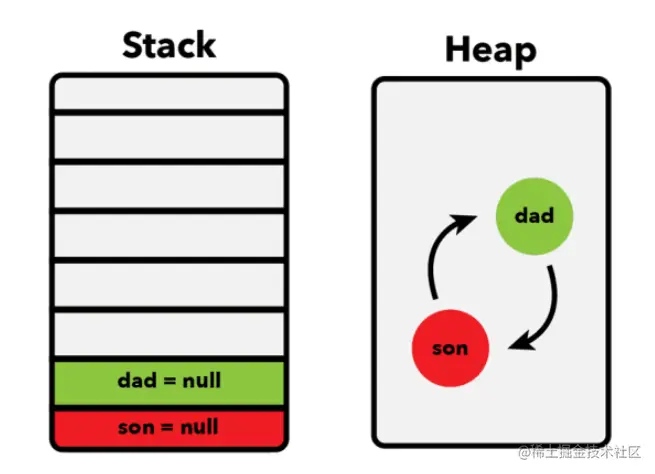 循环引用的问题。 - 访问可达法:从根对象(window/global)出发,递归遍历子对象,把不可访问到的对象认为是可被回收的。