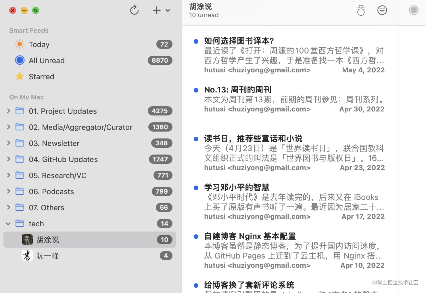 本期主题是个人周刊,那咱就分享一个能够订阅他人文章发布的工具,叫RSS阅读器——NetNewsWire 📖
