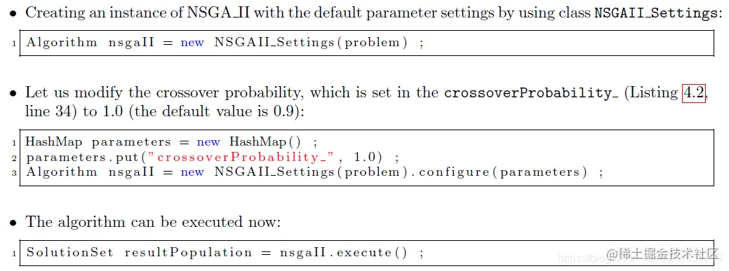 - 下图中简要介绍了使用HashMap修改NSGA-II算法的参数的示例