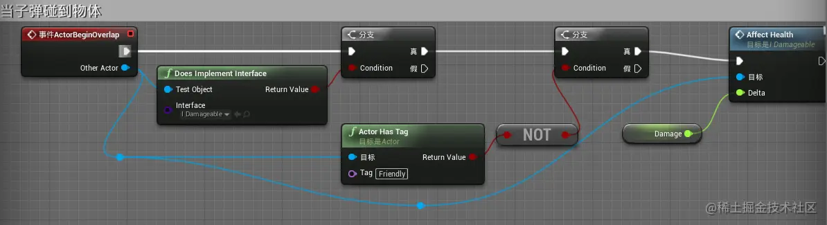 在调用蓝图接口方法前,先使用标签来判断是敌人还是友军,其实我感觉 UE4 的标签和 Unity 的标签还是挺相似的