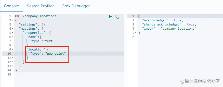 location字段被声明为geo_point 后,就可以索引包含经纬度信息的文档了。经纬度信息的形式可以是字符串、数组、对象。
