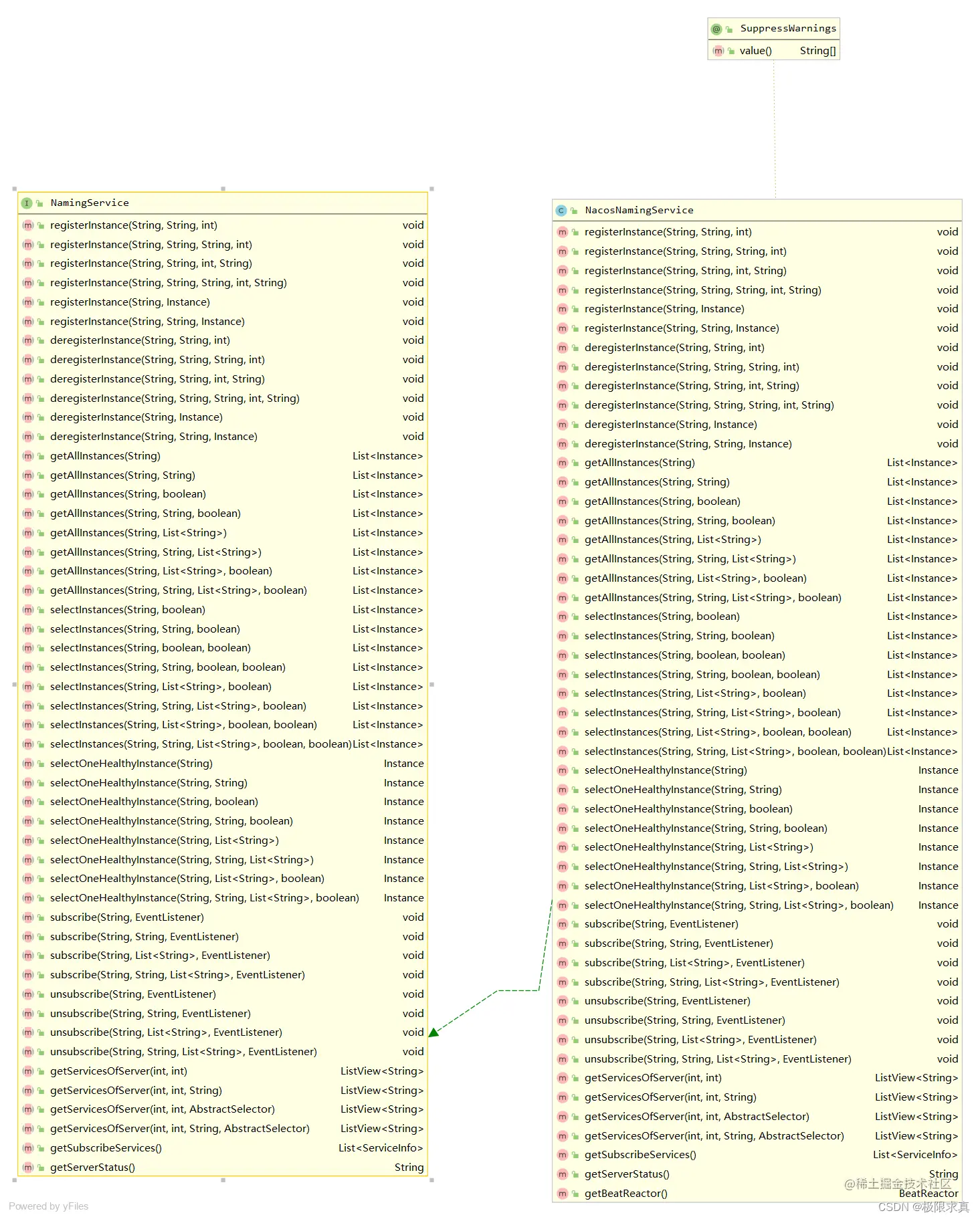 NacosNamingService 是跟服务相关的核心管理类,提供了服务的上下线、服务实例查询、根据健康状态查询实例列表、根据随机权重算法查询单个健康实例、服务监听器订阅\取消订阅、分页获取服务列表。