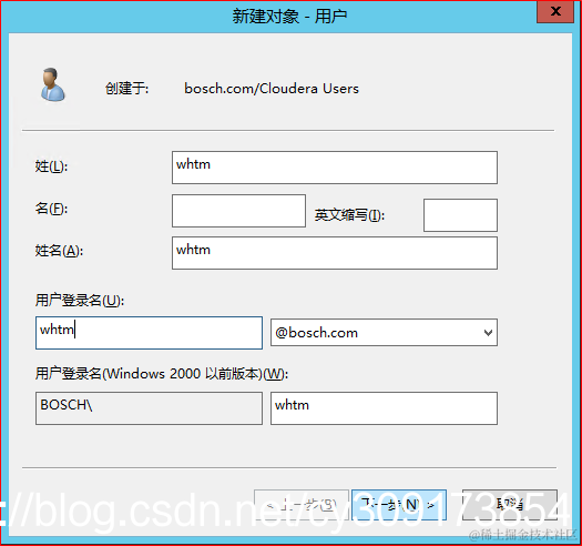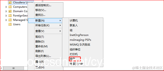 在AD域中Cloudera Users组织创建用户
