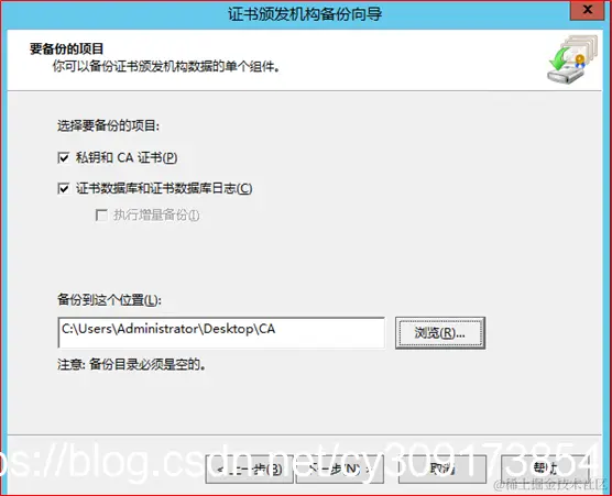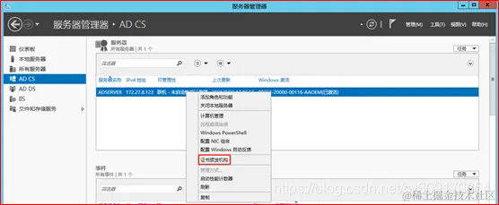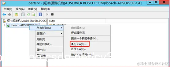服务器管理→AD CS→证书颁发机构→所有任务→备份CA