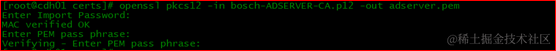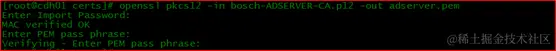# openssl pkcs12 -in bosch-ADSERVER-CA.p12 -out adserver.pem