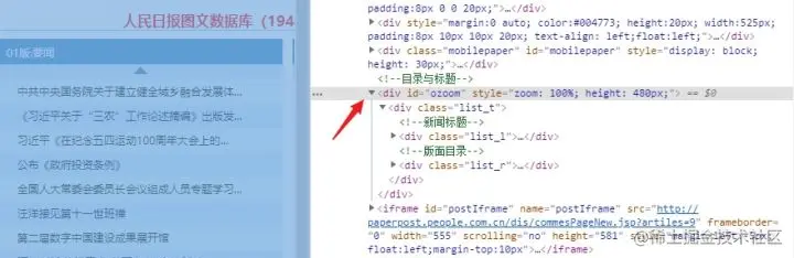 比如我们要获取上图中箭头所指的,id 为 ozoom 的 div 标签时,我们可以这样: