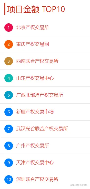 本周交易机构新增披露项目金额排名TOP10有:北京产权交易所、重庆产权交易网、西南联合产权交易所、山东产权交易中心、广西北部湾产权交易所、新疆产权交易市场、武汉光谷联合产权交易所、广州产权交易所、天津产权交易中心、深圳联合产权交易所