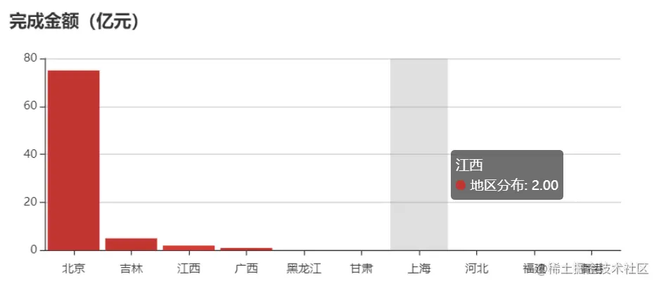 本周项目量完成金额地区TOP10:北京、吉林、江西、广西、黑龙江、甘肃、上海、河北、福建、香港