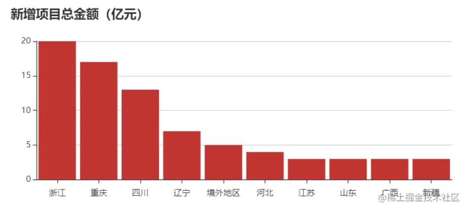 本周新增项目金额地区TOP10:浙江、重庆、四川、辽宁、境外地区、河北、江苏、山东、广西、新疆