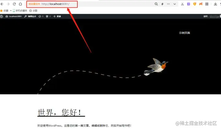 正如上段介绍所述,WordPress会自动以默认模板形式,向8081端口输出一个简单的网页,而这个网页看起来就是这样的。