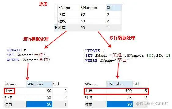 set 列名1=‘新列值1’,列名2=‘新列值2’