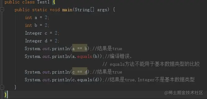 (1) 如果是基本类型比较,那么只能用==来比较,不能用equals