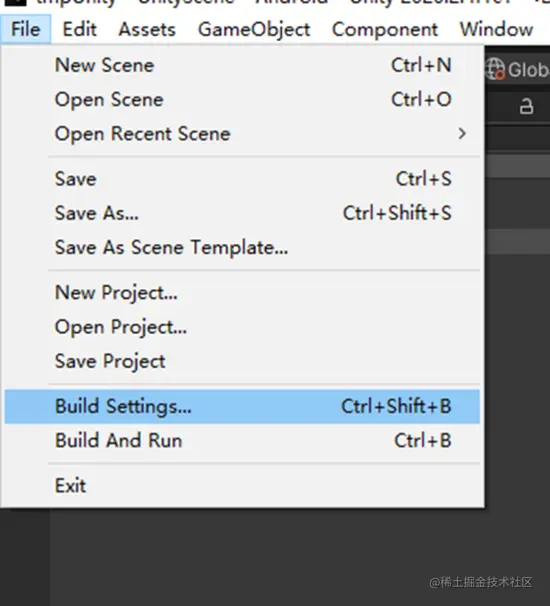 1、打开unity File>Build Settings...目录: