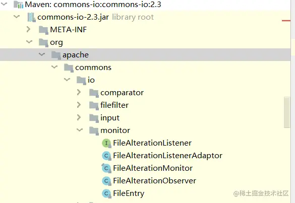Apache Commos IO中的 org.apache.commons.io.monitor包提供了文件系统监听的功能。