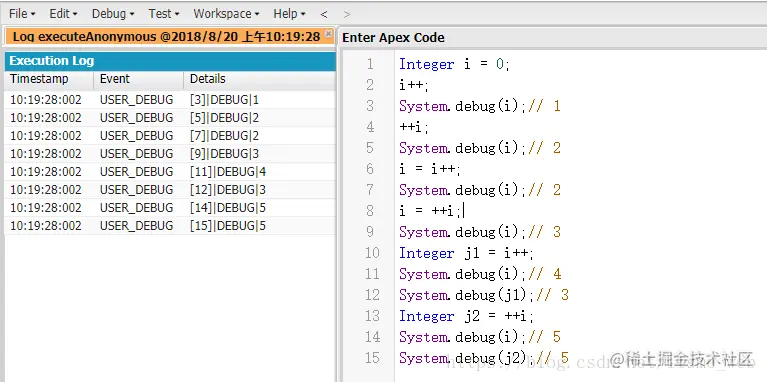 我们通过对比Java相关参考文献:深入理解Java中的i++、++i语句,发现Java和Apex还是有部分差异的,看如下实例: