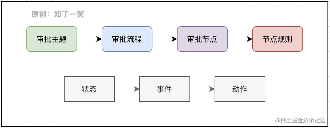 在审批流程的管理中,除了涉及大量的规则配置,还需要管理复杂的状态流转,不同的状态描述不同的结果,并根据状态生成相应的事件和动作,从而实现流程开始和结束的完整性。