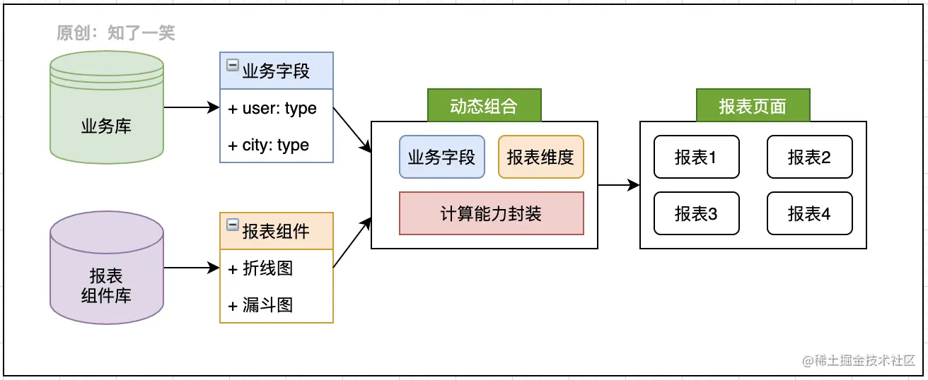 - 报表组件:提供基础的报表组件,例如折线图、柱状图、漏斗图等,并设计初始化规则;